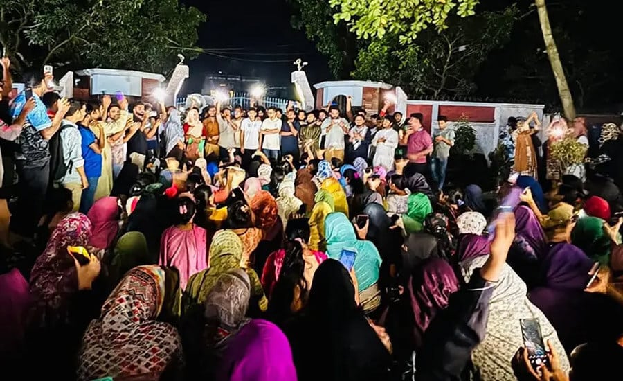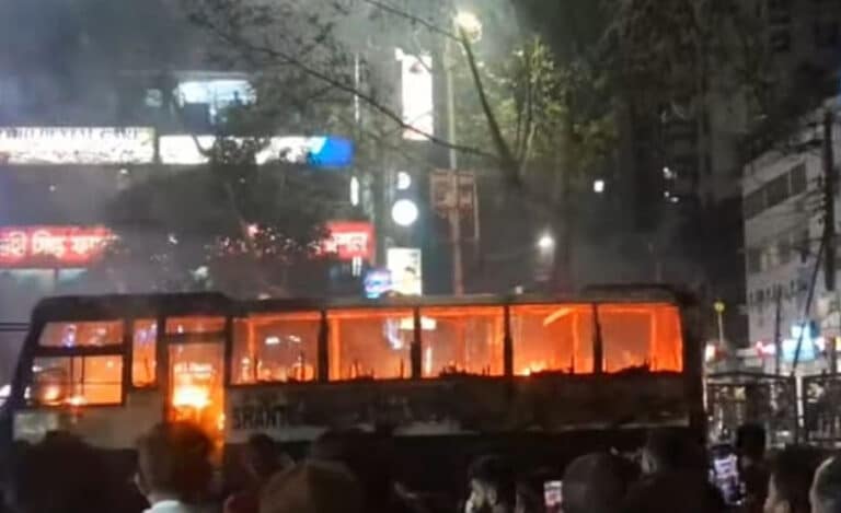 ধানমন্ডির ল্যাবএইড হাসপাতালের সামনে বাসে আগুন