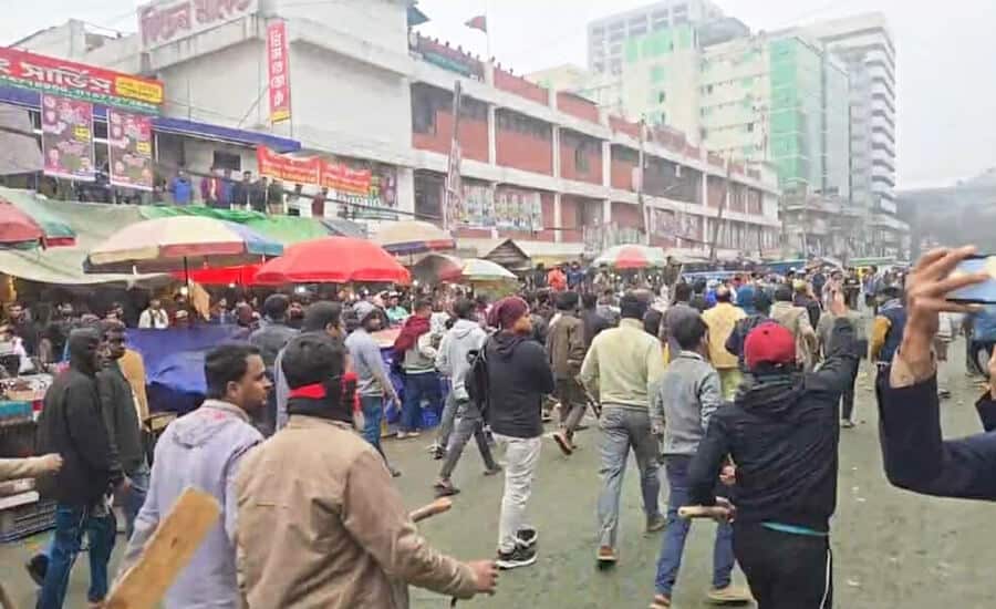 প্রত্যক্ষদর্শীরা জানান, মানববন্ধন চলাকালে দুর্বৃত্তরা হঠাৎ হামলা চালায়। ব্যবসায়ীরাও লাঠিসোঁটা নিয়ে তাদের প্রতিরোধে নামলে দুই পক্ষের মধ্যে কয়েক দফা ধাওয়া–পাল্টা ধাওয়া হয়। তবে এখন পর্যন্ত কোনো হতাহতের খবর পাওয়া যায়নি।