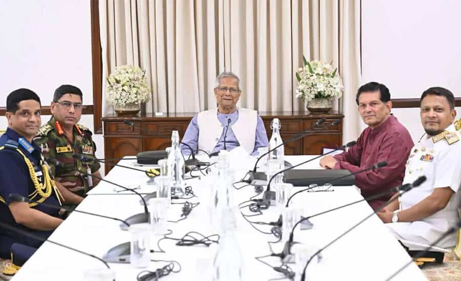 বৈঠকে নির্বাচনকালীন নিরাপত্তা ব্যবস্থা নিয়ে বিস্তারিত আলোচনা হয়। তিন বাহিনীর প্রধানরা প্রধান উপদেষ্টাকে জানান যে, নির্বাচনের সময় সেনাবাহিনী, নৌবাহিনী ও বিমানবাহিনীর সদস্যরা সমন্বিতভাবে দায়িত্ব পালন করবে।