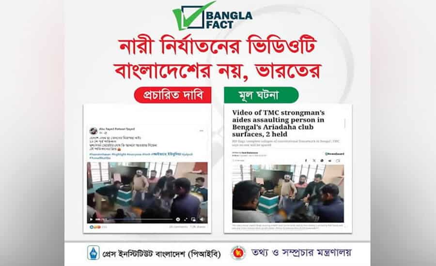 বাংলাফ্যাক্ট অনুসন্ধান টিম জানিয়েছে, ‘নারী নির্যাতনের ভিডিওটি বাংলাদেশের নয়, ভারতের।’