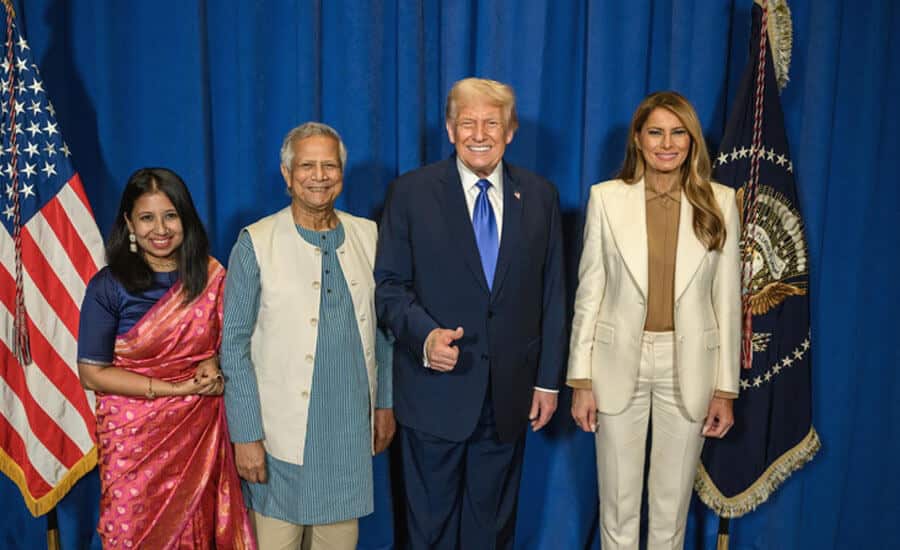 প্রধান উপদেষ্টা অধ্যাপক মুহাম্মদ ইউনূস ও তাঁর কন্যা দিনা ইউনূস গত ২৩ সেপ্টেম্বর যুক্তরাষ্ট্রের প্রেসিডেন্ট ডোনাল্ড ট্রাম্প আয়োজিত সংবর্ধনা অনুষ্ঠানে যোগ দেন।