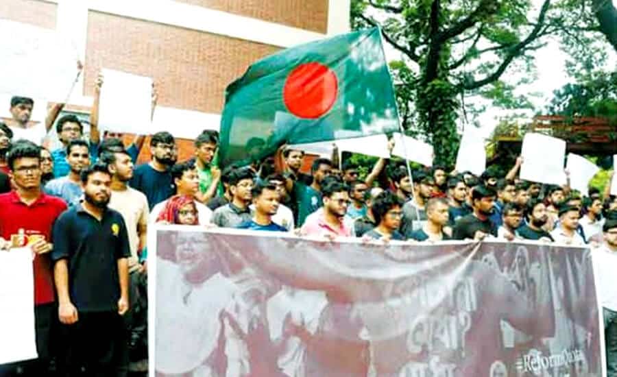 এদিন কোটাব্যবস্থা সংস্কারের দাবিতে দুপুরে মানববন্ধন করেন বাংলাদেশ প্রকৌশল বিশ্ববিদ্যালয়ের (বুয়েট) শিক্ষার্থীরা। বুয়েটের শহীদ মিনারে ১৯ ব্যাচের শিক্ষার্থীরা এই মানববন্ধনের আয়োজন করেন।