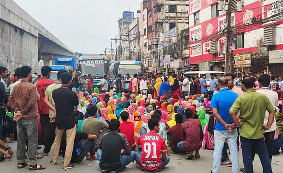 বকেয়া বেতন ও ভাতা পরিশোধের দাবিতে গাজীপুরে সড়ক অবরোধ করে বিক্ষোভ করেছেন একটি তৈরি পোশাক কারখানার শ্রমিকরা। তাদের আন্দোলনের কারণে ঢাকা–ময়মনসিংহ মহাসড়কে প্রায় দেড় ঘণ্টা যান চলাচল বন্ধ থাকে।