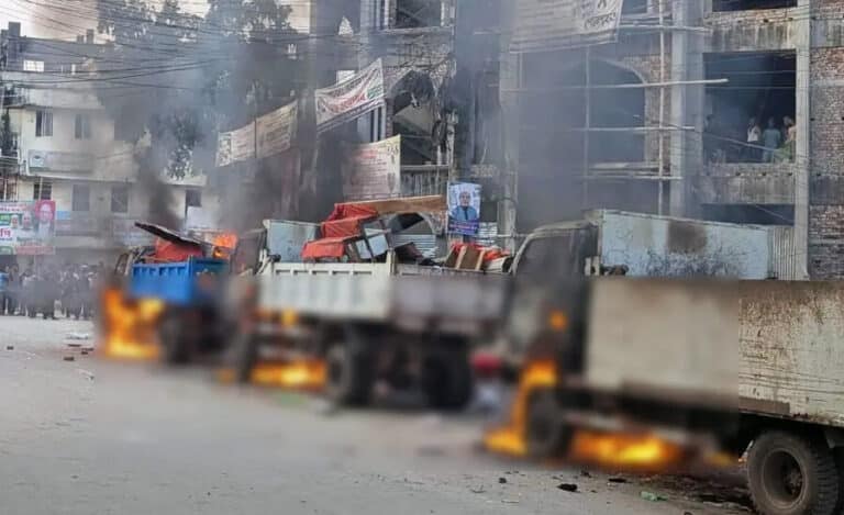 ভোলায় পৌরসভার ৩ গাড়িতে দুর্বৃত্তের আগুন