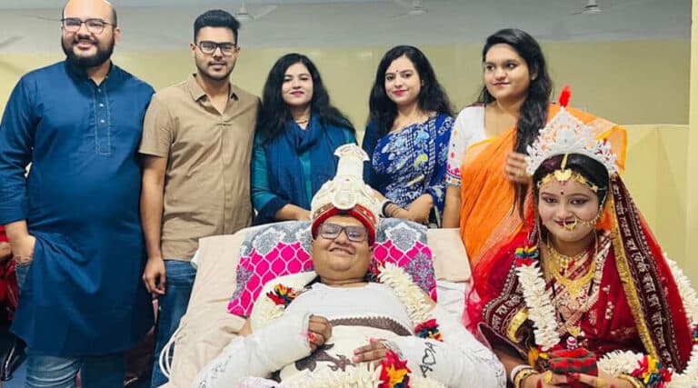 হাত-পায়ে ব্যান্ডেজ নিয়ে হাসপাতালের বেডেই বিয়ে