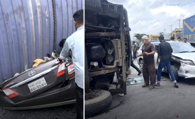 কুমিল্লায় প্রাইভেট কারের ওপর উল্টে পড়ল কাভার্ডভ্যান, নিহত ৪
