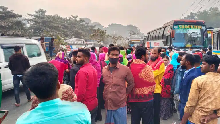 ঢাকা-ময়মনসিংহ মহাসড়ক অবরোধ করলো শ্রমিকরা