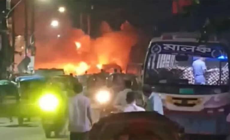রাজধানীর ধোলাইপাড়ে চলন্ত বাসে আগুন