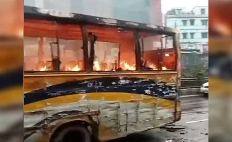 রাজধানীতে বাস থামিয়ে গুলি, এরপর দিল আগুন